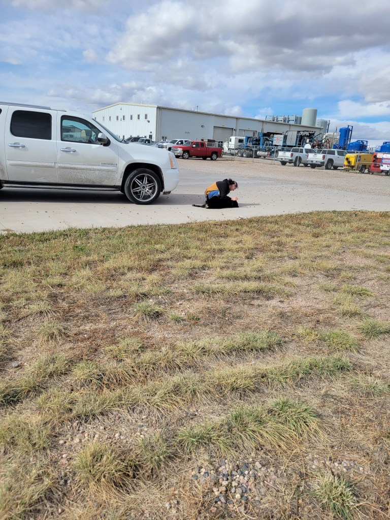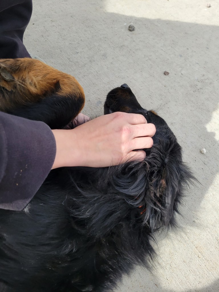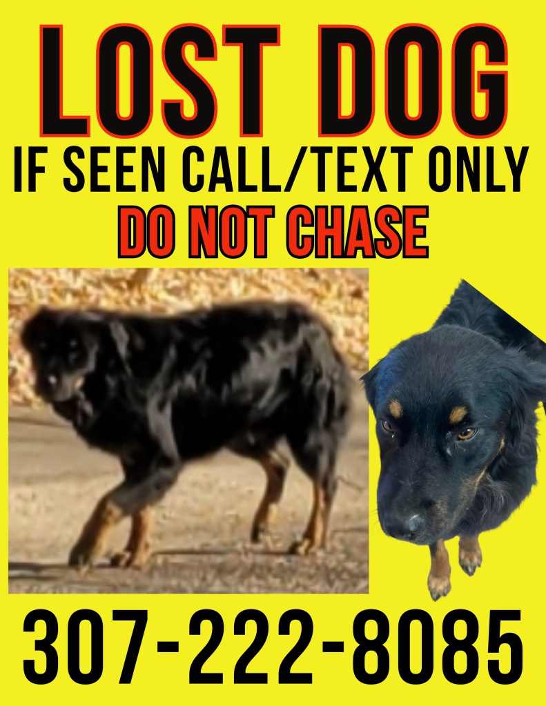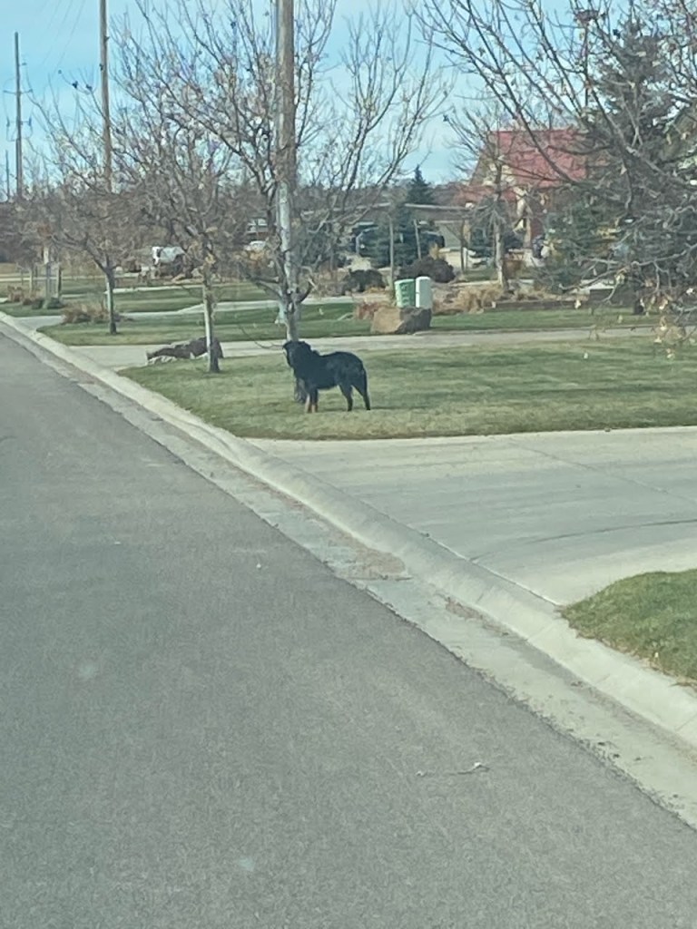 Moose was recently adopted from a shelter in Douglas, WY. On October 27th, 2023 Moose took off from his home in south Cheyenne, WY. This story is not our ordinary recovery story. This was an extremely difficult case, but all of the hard work was worth it in the end. As you can see we received sightings, plenty of them. However Moose would not settle down at all. He was very inconsistent & sporadic with his movements. We were never able to establish a feeding station or trapping location, mainly due to the fact that all of the trailer parks had trash bags set to the curb for pickup. This was an easy food source for Moose. On November 1st, we got him cornered and attempted to catch him by hand. He had other plans and narrowly escaped my grasp. We continued to follow up on leads but most of the time when we arrived he had vanished. We started to nickname him Houdini! On November 3rd we got the call that we needed. A kind gentleman was following as not to lose eyesight of him but also not spook him off. I asked the owner to come along. We arrived & watched him go into a secure fenced area. I had the owner block the entry as best she could while I went to the back corner with his food and a snappy snare. I approached calmly and just sat down and started tossing food his direction. He laid down and we just sat for a few minutes before he decided to pursue the food. He inched closer and closer taking small rests in between. He finally was sticking his head right in the snappy snare loop but when I went to release he backed away quickly. His owner was standing at the other end of the building & tried to block his escape to no avail. He however did catch her scent… He ran through the gated entry & we just let him calm down for a couple of minutes. Owner got out of her vehicle again & sat down on the ground following calming & luring techniques I had explained to her. Moose looped around the vehicle and caught her scent again. We could physically see it click and his whole demeanor change. He wiggled his butt & laid down. He then rolled on his back for belly rubs & owner grabbed his collar quickly. He was caught & safe!