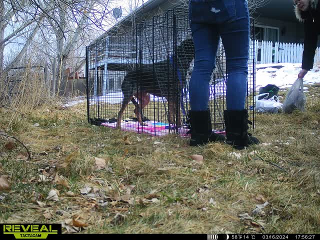 On 3/16 they asked us about placing a trap & we were ready to help. We loaded up around 5pm and headed over. We unloaded & were setting up when Whiskey made an appearance. She was hiding in a little fenced corner area. She went through a downed gate into a yard she could not escape as we had owners block the only exit. We then coached them on what to do for a hand capture & after roughly 30 minutes of coaxing, calming signals, and food bribe – she came up close enough to leash her. We placed her in the trap and carried her back to the front yard and loaded her into her owners vehicle. Her owners, Kimberly & Danielle, did a phenomenal job! Whiskey did a great job as well & we are proud of her bravery today!