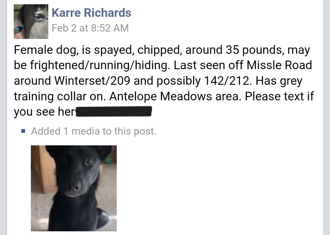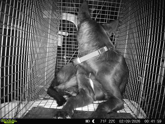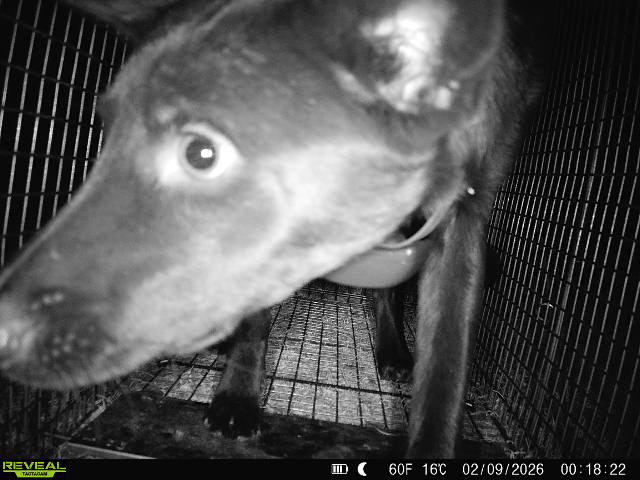On February 2nd, 2026 a post went up on Facebook of a lost Kelpie dog east of town. A few days later when the owner had no luck hand capturing, she reached out for help with trapping. Brenda went out to the property where she had been seen daily traveling and talked with the owner as well as the property owner. They decided to set the trap up on Feb 5th, but bungee it open to see if she would enter for food. She would not enter initially but there was quite a bit going on at the trapping area. Once asked not to hang around the trap area, bait and get out of there, she settled down and entered the trap. Brenda added some of the good stuff that day HAH! She was captured around midnight on Feb 9th. They loaded the trap up and took her home before getting her out, as we always suggest. Her owner was super excited and grateful to have her back home safely.